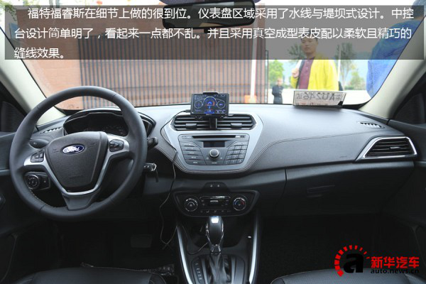 福特福睿斯在细节上做的很到位。仪表盘区域采用了水线与堤坝式设计。中控台设计简单明了,看起来一点都不乱。并且采用真空成型表皮配以柔软且精巧的缝线效果。方向盘也采用了皮质材料,握上去手感很好。座椅的包裹性较强,其材质特选舒适防滑织布和高级皮质,给驾乘者带来舒适体验。