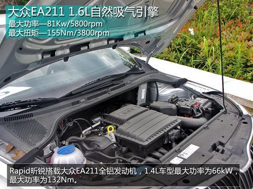 昕锐共有1.4L与1.6L两种动力。我们试驾的1.6L车型动力并不强,油门响应也有些迟缓,如果想有相对充足的动力就不能吝惜油门了。不过节油性与驾驶舒适感才是Rapid昕锐最为在乎的 ,这两方面它表现确实不错。