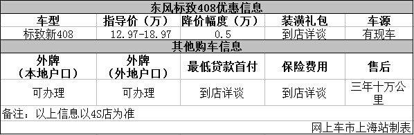 上海:东风标致408优惠0.5万 店内现车销售