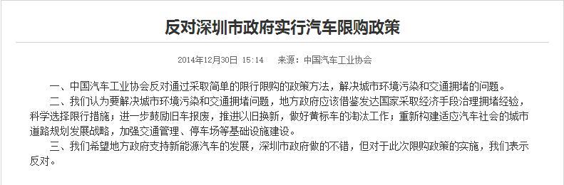 参与互动(0)12月30日下午,中国汽车工业协会发布了反对深圳市政府实行汽车限购政策,内容如下: