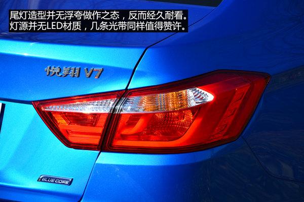 C柱的下滑更趋平稳的走势,除了可以营造出短尾的造型之外,也尽可能的充分扩大车内空间。车身尺寸从数据上不难看出相比同级车型并不占优,不过这也造就了它精致而紧凑的外形。轮胎采用朝阳品牌,195/50 R16的规格,相比低配的15寸轮毂,比例感会更好。在全系车型中,除了最低配的乐活型,其他配置V7的后视镜都是具有电加热功能,顶配版本更是具备外后视镜电动折叠功能。