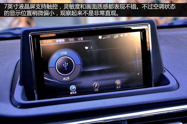 内饰的设计也呈现出了相当高的水准,虽然出于成本的原因仍然使用大量的硬塑料材质,但制造工艺却明显要好很多。车内的整体氛围着重照顾了年轻人的喜好,全黑色中控台配以银色饰条与钢琴烤漆材质,突显年轻与动感。中控台顶端不无意外的采用了硬质塑料,虽然手感欠佳,但对于细节工艺的把控比较到位。除顶配车型外,其他车型均使用塑料材质方向盘,但多功能按键却是全系标配的,考虑到成本原因这样的做法也算厚道。