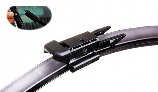 插拔式接口:拆卸方便、造型美观,通常搭配无骨雨刷片,这种接口又分为多种不同的样式,在雨刷片的选择上往往要求专车专用。