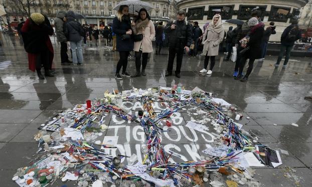 1月7日周三法国讽刺漫画杂志《查理周刊》(Charlie Hebdo)位于巴黎的总部遭武装分子袭击,导致12人死亡。法国总统弗朗索瓦 奥朗德(Francois Hollande)宣布恐怖袭击次日为全国哀悼日,呼吁工商业和学校在中午对枪击案中的死难者默哀。