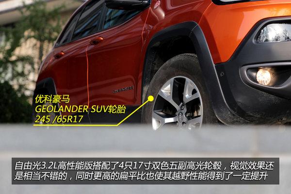 自由光3.2L高性能版搭配了4只17寸双色五副高光轮毂,视觉效果还是相当不错的,并且其所使用的245/65R17的优科豪马GEOLANDER SUV轮胎,也对车辆的越野性能提供了一定帮助。