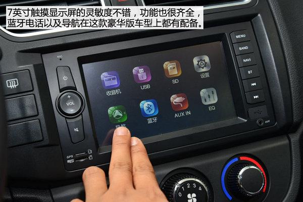 内饰的设计十分简洁,亮点功能也并不多,但是综合起来的配置却并不低,相比其不到6万元的起步价还是挺厚道的。炮筒式仪表造型很漂亮,易读性不错。中央的液晶大屏具备导航功能,而且几乎是全系标配,延续了自主品牌靠配置打天下的特色。