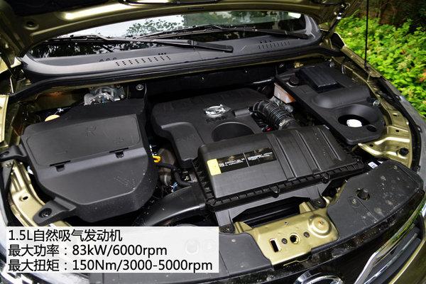 发动机舱内的布局十分规整,就发动机本身而言其账面数据也足够有理由让编辑点赞,当然我指的不是最低配的那款。113马力的最大功率和150Nm的最大扭矩对于一款纯自主品牌发动机来说已经是很不错的成绩,只是全系车型也只有5速手动挡可选,有点儿小遗憾。
