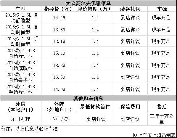 上海:大众高尔夫优惠1.4万 店内现车充足