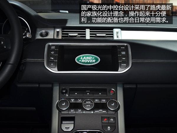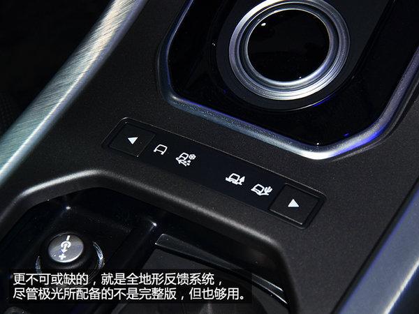 入门风尚版的配置其实已经足够丰富,路虎标 志性的全地形反馈系统和陡坡缓降等越野配置一律标配,全地形反馈适应系统共有四种不同的驾驶模式设定,分别为:普通驾驶模式、草地/沙砾/雪地模式、泥沼 /车辙模式以及沙地模式。带清洗功能的自动大灯和前排加热座椅更是保证了野外驾驶的舒适性,这款车对于预算有限又想体验路虎产品的车主还是很有诱惑力的, 而它也是我们最为推荐的国产极光车型。