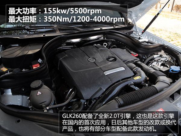动力方面,奔驰GLK提供了一款全新的2.0T引擎,根据调教不同GLK200车型提供135kW最大功率,GLK260车型提供155kW最大功率,另外还有GLK300车型搭载了3.0L自然吸气发动机,与之匹配的是7速手自一体变速器。