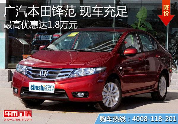 近日,编辑从广汽本田万泉河4S店了解到,店内广汽本田锋范现车充足,近期到店购买该车,部分车型最高可享1.8万元车价优惠。具体如下: