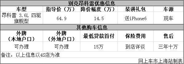 日前网上车市上海站从上海协通别克4S店了解到,目前该店别克昂科雷优惠出售,详情请见下表:
