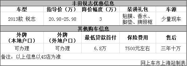 上海:丰田锐志现优惠3万元 店内少量现车