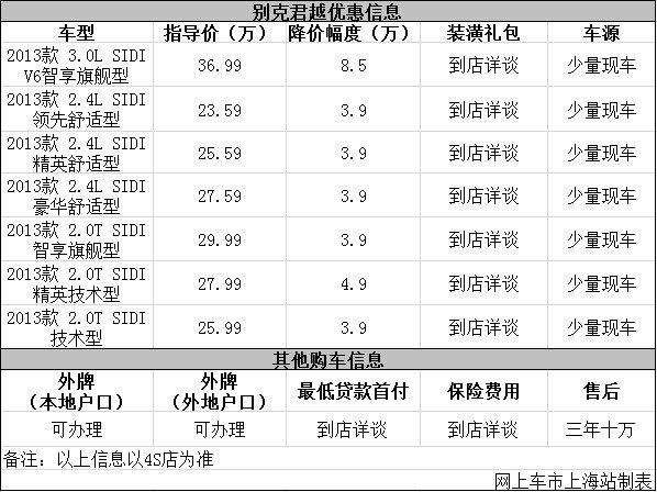 上海:别克君越最高优惠8.5万元 店内少量现车