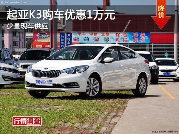 近日,网上车市编辑从长沙东风悦达起亚合顺4S店了解到,到该店购买起亚K3车型优惠1万元,少量现车供应。感兴趣的朋友可来电详询:4008-112-233转4043。