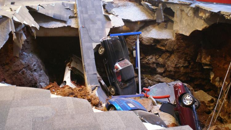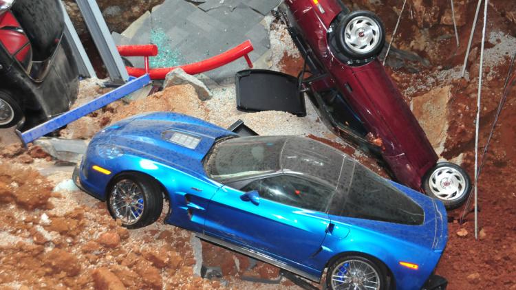 克尔维特博物馆的圆顶体育馆没有打算一直保持这个模样。他们最初想保持天坑并将其作为旅游景点。但该计划最终告吹,不过,该博物馆最终决定其中五辆轻损的雪佛兰将依旧会保持原样不做复原。