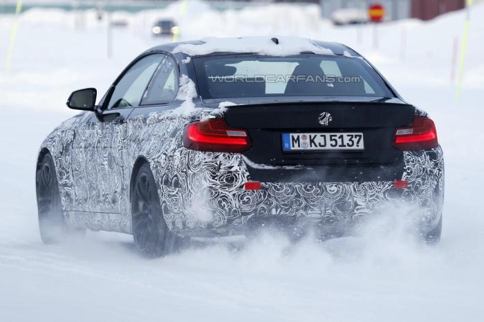 从谍照显示,宝马M2的后排气筒及扩散器的设计灵感大体上来源于宝马Vision Gran Turismo概念车,同时,这一款高性能跑车的后垂直反射器垂直并入出风口中,与宝马X5 M及X6 M相类似。宝马M2车体侧面的侧进风口设计也与Vision Gran Turismo相似。同时,轮眉没有宝马1系M轿车突出。