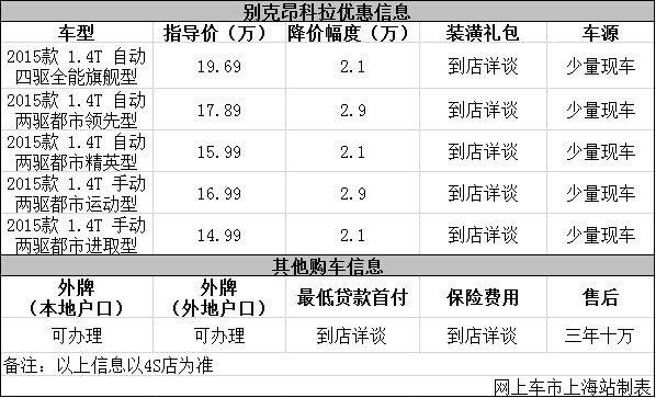 上海:别克昂科拉最高优惠2.9万 店内少量现车