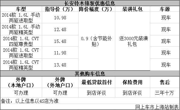 上海:铃木锋驭优惠0.9万元 送3000元装潢礼包