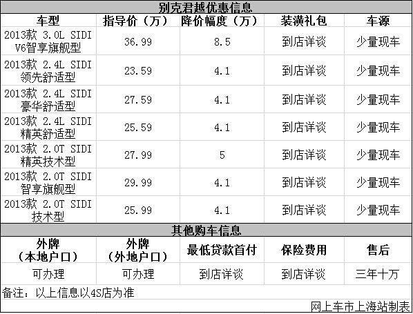 上海:别克君越最高优惠8.5万元 店内少量现车