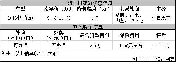 日前网上车市上海站从上海宝和丰田4s店了解到,目前该店丰田花冠优惠出售,详细请见下表: