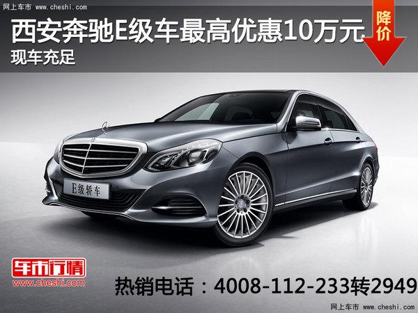 近日,据网上车市西安分站编辑从西安庞大兴驰福建奔驰4S店获悉,奔驰E级车最高优惠10万元,购车还可享最高1万元装潢优惠(市场行情随时在变,具体优惠请以展厅报价为主),现车充足,有意者不妨致电经销商或者到店了解更多信息。详情以及更多优惠请致电4008-112-233转2949。