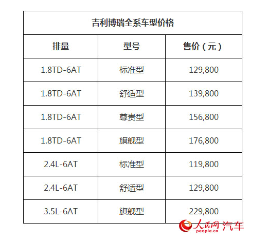 9日晚,吉利博瑞正式上市,公布了2.4L、1.8T、3.5L三种排量共7款车型的价格,区间为11.98万元-22.98万元。具体售价见下表:
