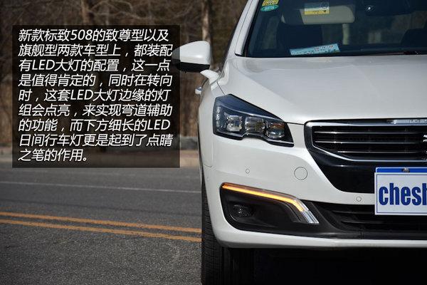 新款标致508的致尊型以及旗舰型两款车型上,都装配有LED大灯的配置,很显然近几年来LED大灯越来越多的出现在了一些高端品牌的车型上,而像标致这种级别的品牌在顶配车型上采用此配置的做法也是有的,所以由此可见在这一方面标致还是紧跟潮流的,同时在车辆装完时,这套LED大灯边缘的灯组会点亮,从而实现弯道辅助的功能,而下方细长的LED日间行车灯更是起到了点睛之笔的作用。