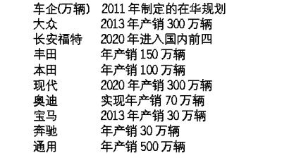 来到中国,汽车巨头们入乡随俗。2011年前后,他们随着中方合作伙伴一起制定了未来发展规划。与中国汽车企业不同,汽车巨头制定目标“要么远,要么近”,“近”只是到2013年,“远”则到2020年。又或者,干脆不限定时间,给自己留有余地,这也是汽车巨头的聪明之处。