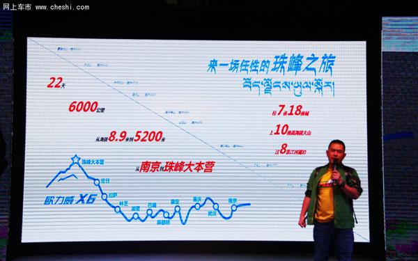 发布会上,除了激动人心的欧力威X6拗动亮相和精彩的表演之外,最振奋人心的就是欧力威X6珠峰之旅从南京正式启动。这一支由美女车模、专业媒体、专业背包客、欧力威X6车主组成的欧力威珠峰之旅车队,从南京出发,历经22个日夜,行走18座城市及6000多公里路,一路拗进西藏,拗上珠峰大本营。