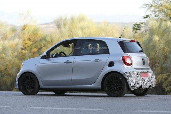 海外媒体曝光了2016款BrabusSmartForFour轻度伪装谍照。据悉,新车正在西班牙进行路试测试。这款曝光的小可爱看起来比现款要低矮一些,也许重新调校了悬挂与制动系统,车尾采用双重排气系统,更加富有运动气息。