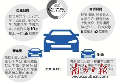 南方日报讯 (记者/郭小戈 实习生/陈惠敏)日前,国家发改委、工信部和财政部联合发布了《节能产品惠民工程节能环保汽车(1.6升及以下乘用车)推广目录(第二批)》(以下简称《目录》)的公告,国内一共19家汽车企业的110款车型入选。其中,自主品牌有9家车企的58款车型入围,占比达到52.72%。按照政策,消费者购买入围车型将享受3000元财政补贴。