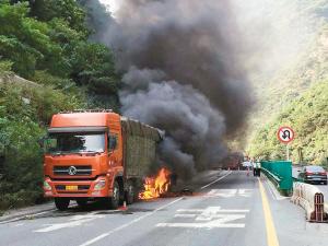 刹车片过热起火 货车高速上自燃