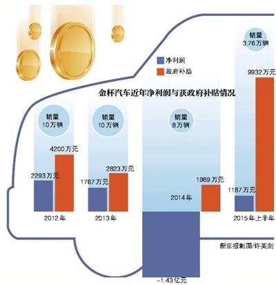 如果不是这笔补贴赶在6月30日之前到来,金杯汽车将亏损8761万元。