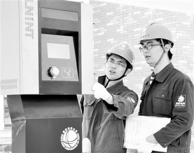 10月11日,在沈海高速奉化服务区东区,国网浙江省奉化市供电公司的员工正在对电动汽车快充站的配电设施进行验收。刘新武摄