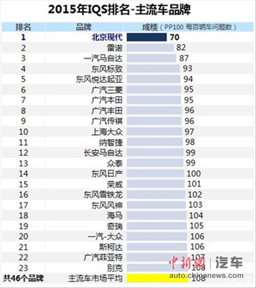 北京现代在J.D.Power亚太公司发布的相关调研报告中,获得了2015年IQS(新车质量调研报告)、VDS(车辆可靠性研究报告)、SSI(汽车销售满意度调研报告)三个项目的第一名。