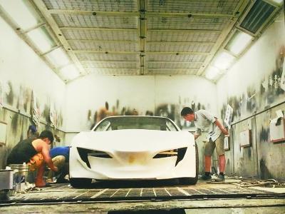 造车真正开始行动已经是今年2月的新学期,留给他们的时间不多。马军飞通过二手渠道拿到了一辆原型车,仅用了四天在修理厂切出了车架,“这时候我们还没有设计图,我想的是在后面造型时来完成外观设计,就像欧美服装设计师进行立体剪裁一样,在实践中探讨、解决设计与制作之间的问题。”马军飞说,问题很快显现,在跑车外壳制作中,立体空间的对称问题困扰了他们很久,车身两侧很难保证对称,开起来就会发飘,车架、轮胎等部件的磨损就会不均衡。历经多次失败后,他们在实车上建立X、Y、Z面模型,做好对称,终于解决了这一难题。