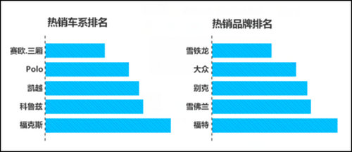 在瓜子平台上,福特、雪佛兰、别克名列热销二手车品牌前三。福克斯、科鲁兹、凯越则位居热销车型前三甲。此外,大众品牌下4款车系都排在热销榜前十,成热销车系最多的品牌。