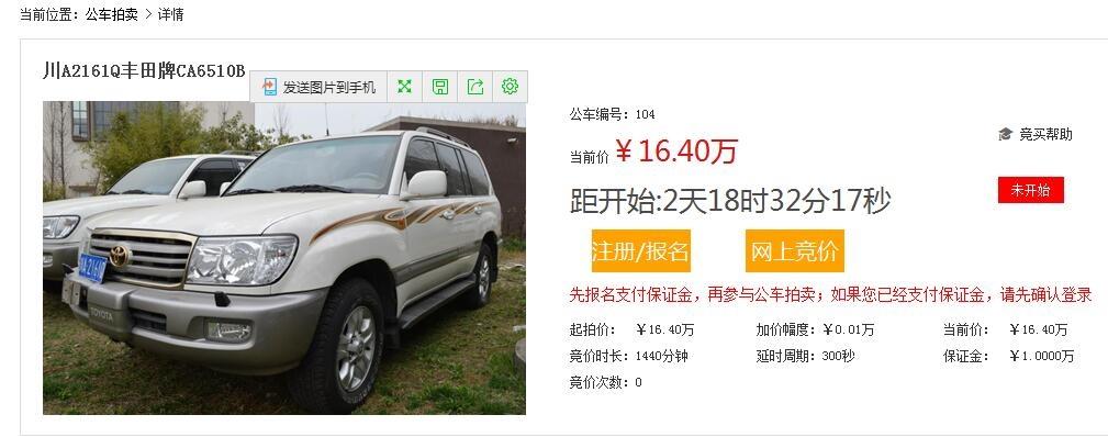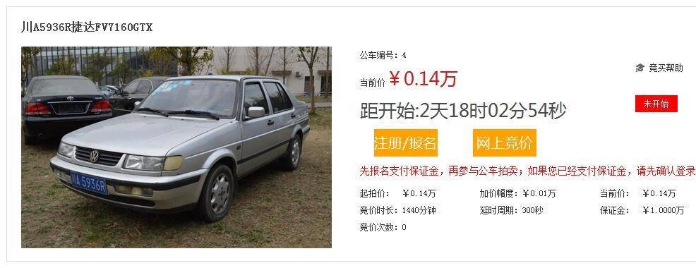 中央驻川单位108辆公车将拍卖 最低起价1400元