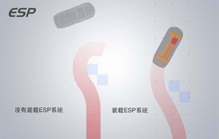 ESP英文全称是“Electronic Stability Program”,它综合ABS、BAS和ASR三个系统功能,在汽车行驶过程中,ESP系统通过不同传感器实时监控驾驶者转弯方向,车速、油门开度、刹车力以及车身倾斜度和侧倾速度,以此判断汽车正常安全行驶和驾驶者操纵汽车意图的差距。然后通过调整发动机的转速和车轮上面的刹车力分布,修正过度转向或转向不足。ESP 在提高汽车行驶稳定性方面效果显著。