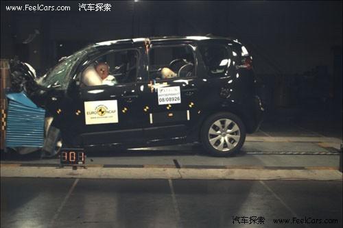 测试所使用的C3毕加索属于小型MPV,自重1289KG。在碰撞测试中由于行人保护和安全辅助的得分都比较低,因此只得到了4颗星。