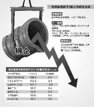 宝钢集团旗下另一家上市公司宝钢股份的盈利也出现大幅下滑。根据宝钢股份日前发布的业绩快报,去年净利润为9.61亿元,同比下降83.4%。由此,宝钢集团控股的3家钢铁上市公司中,宝钢股份盈利下滑,八一钢铁和韶钢松山出现严重亏损。