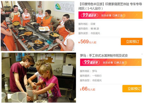 美食向来为游客出国旅行追寻的目标。“在国外学习当地厨艺”,成为最会玩排行榜top2。去哪儿网“99嘻游季”活动中,在印度家庭学习厨艺,仅需569元;而在罗马学做纯正意大利手工冰激凌,仅需66美金(约合人民币440元)。