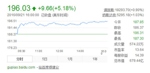 中新网9月22日电 美东时间9月21日,据美媒Insider Monkey报道,德意志银行发布报告将百度(NASDAQ:BIDU)目标股价由182美元调高到219美元,维持买入评级。百度股价自21日开盘一路上涨,截至收盘时涨幅达5.18%至196.03美元,最高时达196.31美元。