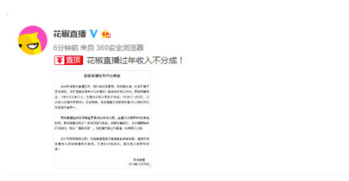 不差钱! 花椒直播春节取消平台分成