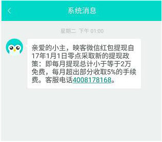 记者留意到,另外一家直播平台映客日前也宣布了一项关于主播微信红包提现的新政策:主播每月提现总计小于等于2万免费,每月超过部分收取5%手续费。假设一个主播一个月映客微信红包有10万,新规执行后,要额外收取4000元手续费。