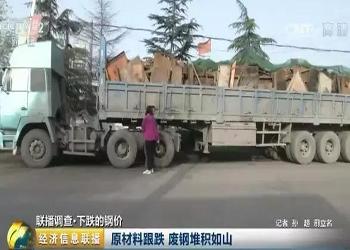 山东省肥城市废钢回收商 孟庆东:今天收的明天就降了,降价太频繁了,平均每三到五天降一次的,这样一来,我们就现在每吨亏一百多元。