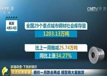 参与互动 金三银四是钢铁行业的传统旺季,一般情况下,每年这个时候的钢价以拉涨为主,但今年钢价不涨反跌,从三月下旬开始到现在,一个月的时间,钢坯、螺纹钢、热卷板等钢材品种全线下跌,最大跌幅超过20%。面对大幅下跌的行情,钢贸商纷纷压价抛出手中的库存。