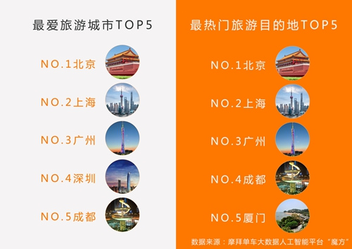 五一期间,许多人趁着难得的假期出门旅游,已在全国50多个城市提供服务的摩拜单车则成为游客们在异地游览城市风景最适合的代步工具。根据摩拜大数据平台“魔方”统计的用户异地骑行数据显示:最热爱旅游的城市TOP5分别是:北京、上海、广州、深圳和成都;最吸引游客的城市TOP5则分别是北京、上海、广州、成都和厦门。
