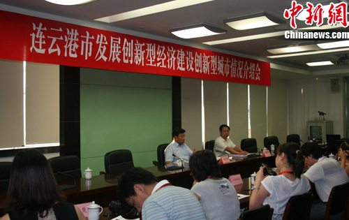 中新网连云港8月21日电 (孟湘君) 8月20日,“创新型经济在江苏网络行”苏北分队的10余名网媒记者来到连云港,对连云港创新型经济的发展状况进行集中报道。连云港市委书记王建华向网媒记者们介绍了连云港市在创新型经济上制定的战略措施和长远规划,并通过实际举例阐明了连云港市为发展创新型经济所打的几场“硬仗”。